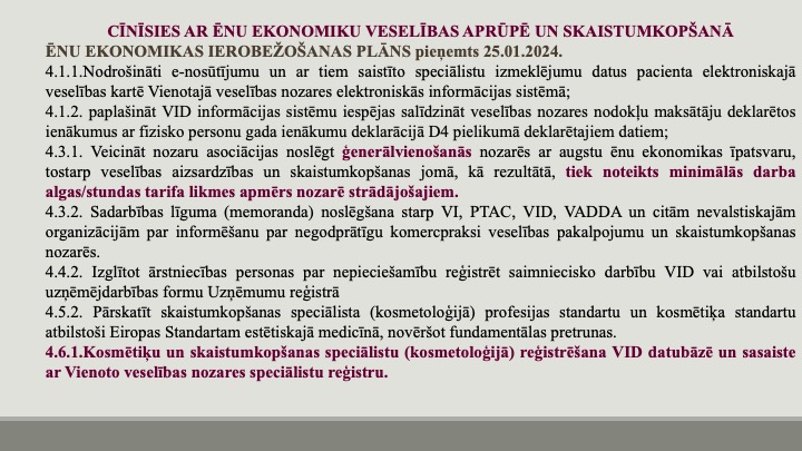 Pēc Veselības Inspekcijas un nozares ekspertu ierosinājuma, balstoties uz infekcijas slimību pieaugošo risku, Veselības Inspekcijas kontroles datiem, nozares attīstības tendencēm, jaunu tehnoloģiju, invazīvu procedūru ienākšanu kosmētiķa ikdienā, kā arī uz ES Eiropas skaistumkopšanas pakalpojumu Standartu EN 16708: 2016 „Beauty salons services”, šī gada laikā ir gaidāmas izmaiņas esošajos MK noteikumos Nr.22 ,,Par higiēnas prasībām kosmētiskajiem kabinetiem”. Šobrīd apstiprināšanai Ministru Kabinetā ir iesniegts jauns noteikumu projekts „Higiēnas prasības skaistumkopšanas pakalpojumu sniegšanai”, kas apvienos un papildinās divu spēkā esošu Ministru kabineta noteikumu prasības – “,,Par higiēnas prasībām kosmētiskajiem kabinetiem (Nr.22) un MK noteikumus ,,Par higiēnas prasībām frizētavām” (Nr.71). Projekta mērķis ir mazināt infekciju slimību risku un nodrošināt drošākus skaistumkopšanas pakalpojumus patērētājiem. Lai to sasniegtu, jau esošo noteikumu prasības ir papildinātas ar jaunām.